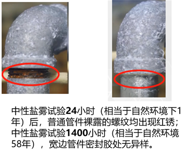 在嚴格的中性鹽霧試驗中,玫德寬邊瑪鋼燃氣管件表現(xiàn)驚人,歷經(jīng) 1400 小時依然無銹蝕跡象。而普通瑪鋼管件在同樣試驗條件下,短短 24 小時便出現(xiàn)紅銹,二者防腐性能高下立判。這一卓越成績充分證明了玫德管件強大的抗腐蝕能力,即使在惡劣環(huán)境中,也能長期保持良好性能,大大延長了使用壽命。