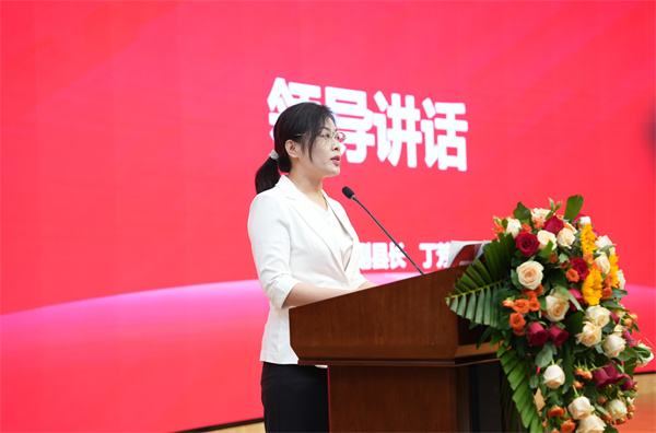 平陰縣副縣長丁芳在講話中對玫德集團和瑪鋼助學基金管理委員會表示衷心感謝,對玫德集團在公益助學等領域所展現出的企業擔當表示高度認可。她寄語廣大學子要志存高遠,心懷感恩,建設家鄉。