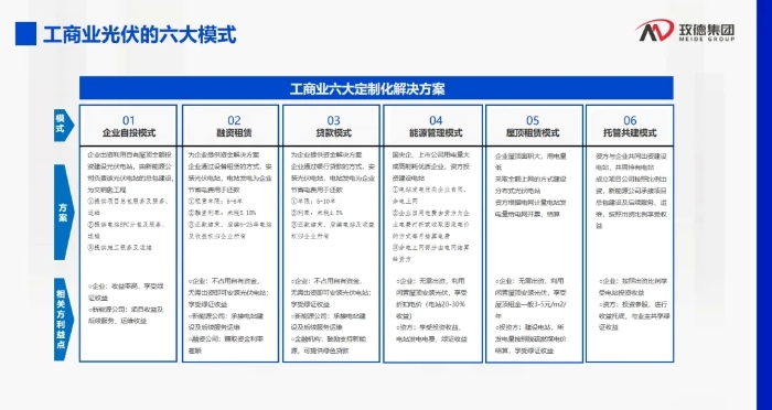 對于新能源的崛起,孔主席分享了玫德集團近些年光伏新能源的實踐,并深入淺出的舉例介紹了對鑄造企業的實際經濟價值,以及玫德新能源在工商業提供的六大定制化解決方案。